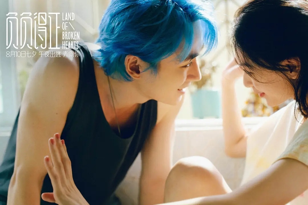 尤其蓝头发的朱一龙看上去又帅又温柔,更非常适合这样的爱情片。